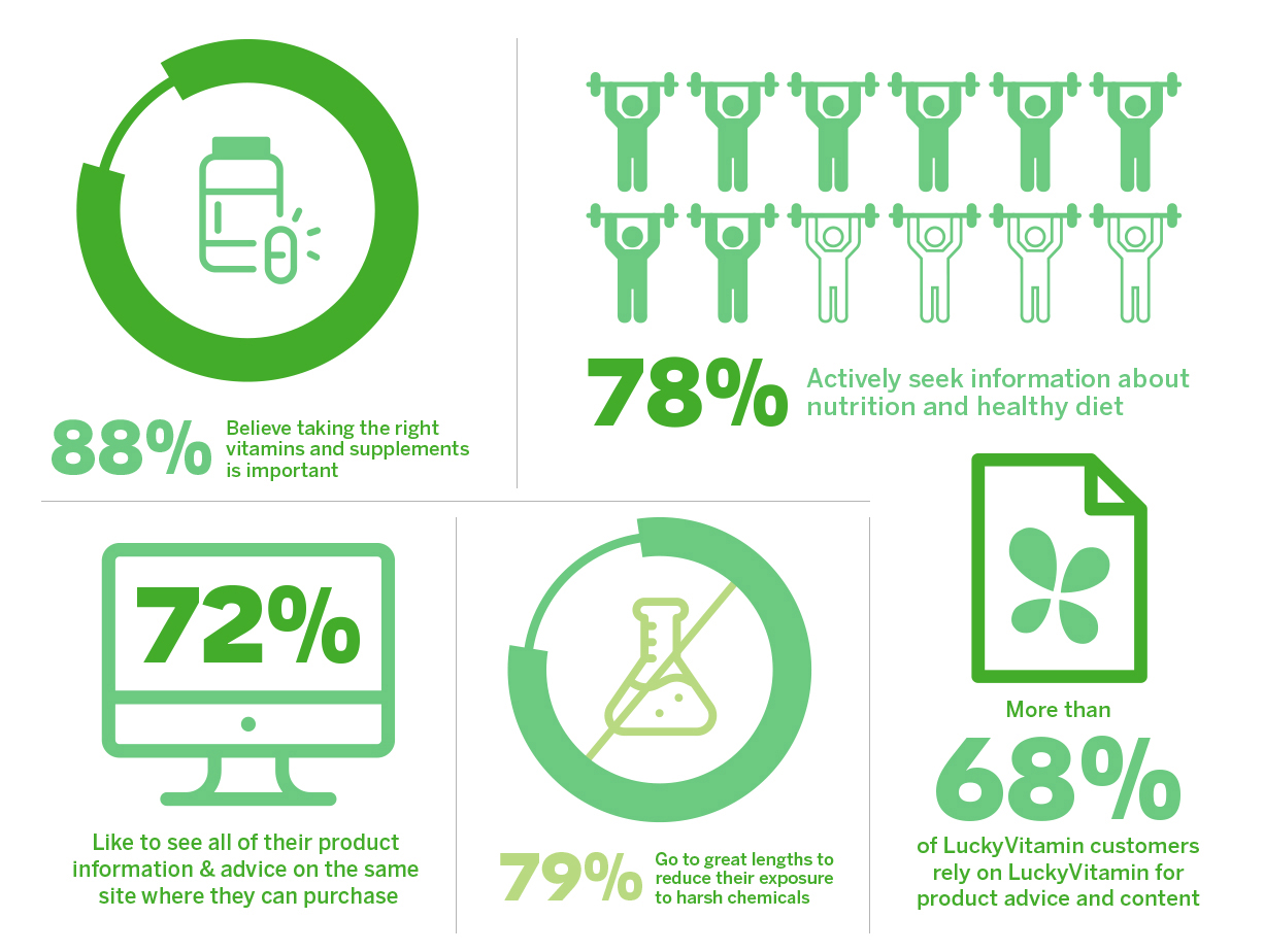 Our customer had a sense of “continuous discovery,” and she never felt she had too much information. We determined LuckyVitamin should become a source of inspirational knowledge in addition to selling products.